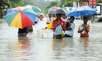 File photo of residents walk along a flooded road in Piliyandala in 2010 Calamitous impact of summer monsoon in Lanka marked by flooding and drought...