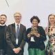 Peter Hawkins, Director Marketing, Tikiri Toys (centre left) and Mano Sheriff, CEO, DSL Lanka (centre right) receive the award for ‘Most Ethical Gift’ at the NEC...