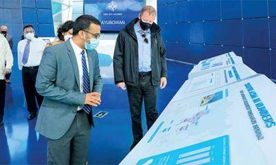 The delegation views the building plans for Port City Colombo World renowned financier and a member of Rothschild family, Nathaniel Rothschild who is in Sri Lanka...