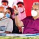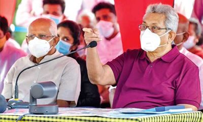President Gotabaya Rajapaksa gestures during a recent meeting at Rawanakanda, a village at Imbulpe, Balangoda. Senior Advisor to President Lalith Weeratunga looks on (Pic by Jeevan...
