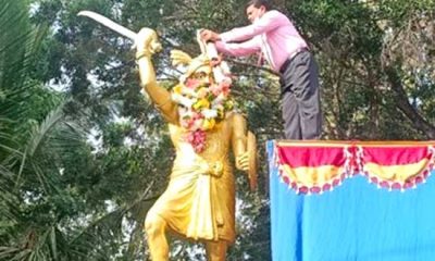 Vavuniya District Secretary S.M. Saman Bandulasena garlands the Bandara Vanniyan statue opposite the District Secretariat on Tuesday to mark the 217 commemoration of Kulasekaram Variamuttu Bandara...