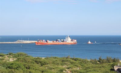 M.V “ALDI WAVE” entering HIP through navigational channel. Two vessels owned by global French transportation and shipping group CMA CGM made their maiden call at...