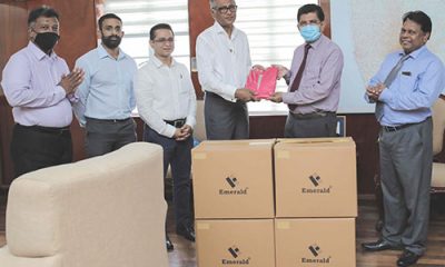 Emerald donates PPE to COVID 19 frontline medical staff. M.M.M Ihsan, Executive Director, Emerald International introduces Emerald NMRA approved reusable 5-ply face masks to Dr. Anil Jasinghe, Director-General...